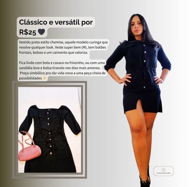Descubra a versatilidade e sofisticação do nosso vestido preto estilo chemise, tamanho M. Seu design atemporal permite diversas combinações: use com botas para um visual moderno, casacos para dias mais frios ou sandálias para um look casual e elegante.