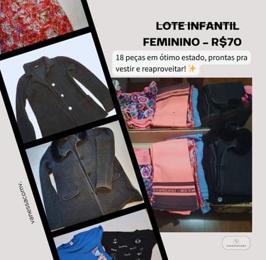 Lote infantil de menina, conta com 20 peças (sim, eu coloquei mais 2) entre 6 e 12 anos. Clique no botão para mais detalhes.